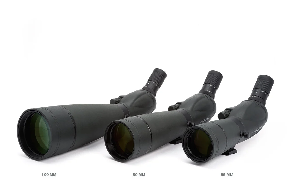 Large objective 80mm and 100mm models are extremely useful in the field both for all the additional light they allow into the optical system and in making the most of the dawn’s early or the twilight’s fading light.