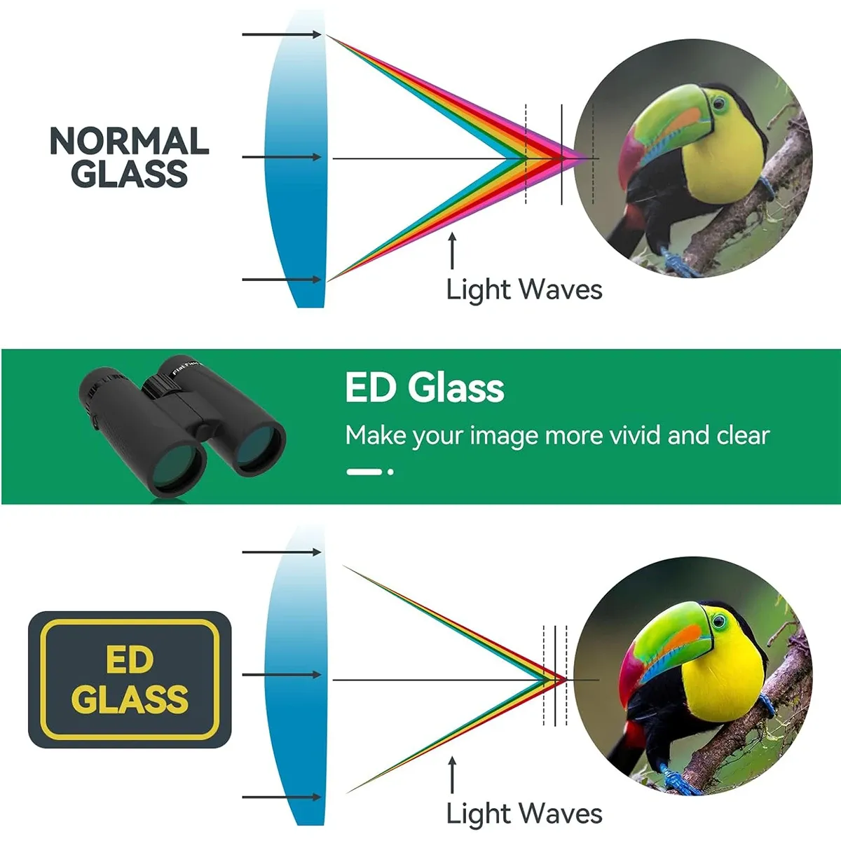 ED glass can eliminates chromatic aberration or color fringing, a visual defect common in binoculars. You’ll enjoy razor-sharp images.