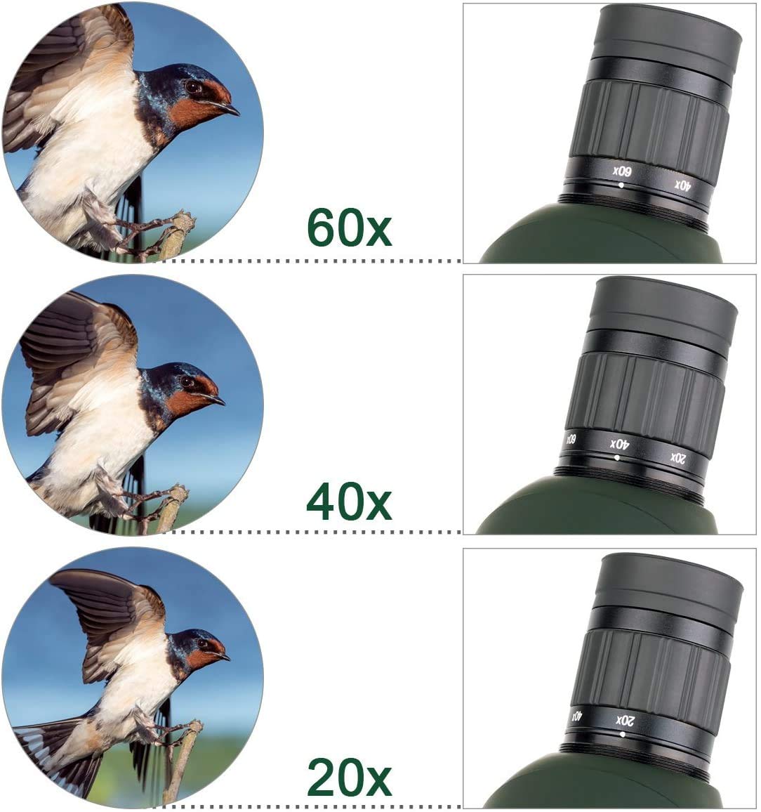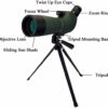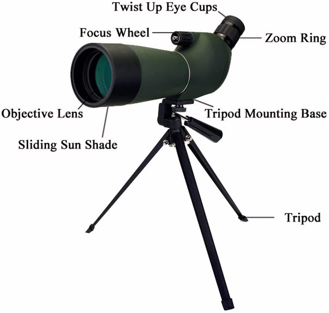 - 20x-60x zoom magnification spotting scope;20x magnification to observe the entire landscape;then zoom 20/40/50x higher magnification focus on more details