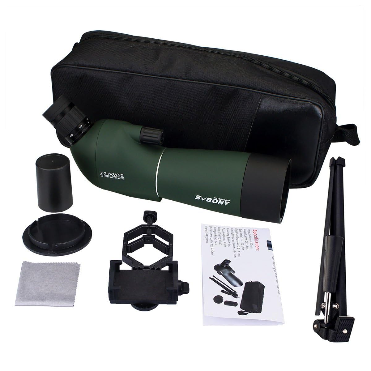 Svbony SV28 20-60X60 Spotting Scope with Smartphone Adapter and Tripod